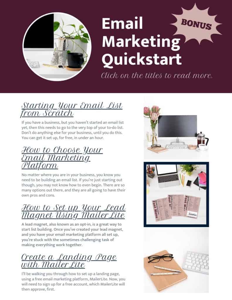 This bonus page will automatically be included with your Create a Website that Engages Reference Guide. It contains links to blog posts and videos that will give you all the tools you need to get started with your email list today.