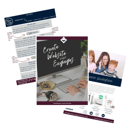 I’ve created a special bonus, just for you. You’ll get your very own PDF version of the Create a Website that Engages Reference Guide with what elements to include on your website.